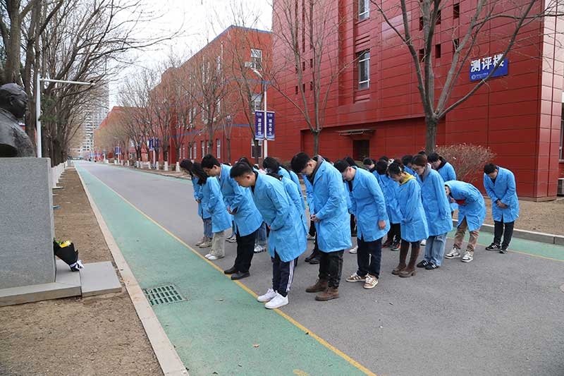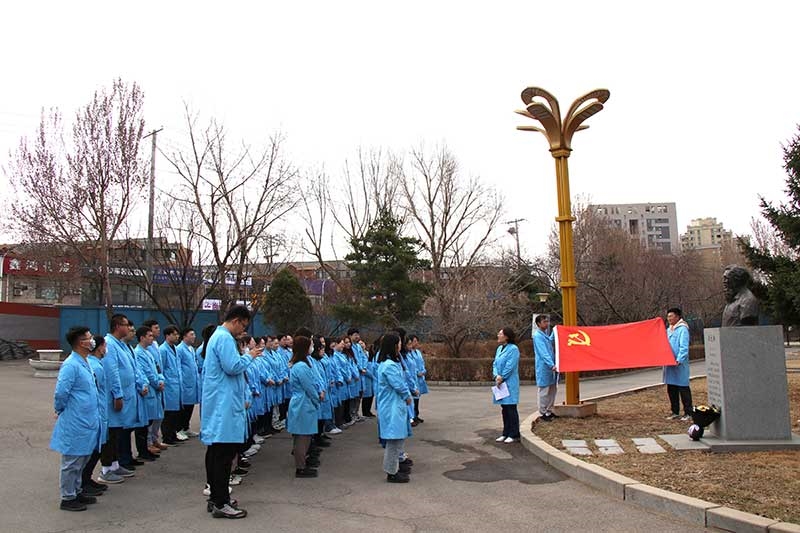 任繩武、張少銘、王尊孝三位老一輩科學(xué)家銅像矗立在主干道兩側(cè),猶如一座座信仰的豐碑激勵(lì)著一代又一代沈陽(yáng)院青年科技工作者不忘興化報(bào)國(guó)初心,勇攀科技高峰。團(tuán)員和青年代表分別向銅像獻(xiàn)花、鞠躬致敬。在院史館,材料所于鵬帶領(lǐng)青年集體宣誓。團(tuán)委書記郭茂帶領(lǐng)大家重溫三位老科學(xué)家生平事跡,學(xué)習(xí)老一輩科學(xué)家攻堅(jiān)克難、默默奉獻(xiàn)的科研精神和寶貴品質(zhì),鼓勵(lì)團(tuán)員和青年在科研任務(wù)中打頭陣、勇?tīng)?zhēng)先,在高質(zhì)量建設(shè)中國(guó)中化化工過(guò)程技術(shù)研究院的歷史重任中貢獻(xiàn)青春力量。