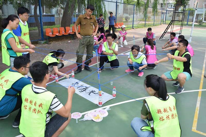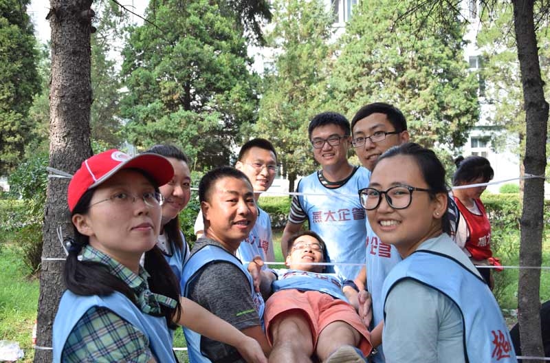 在培訓(xùn)最后的拓展環(huán)節(jié)中,新員工和新生充分展示了他們的青春活力、才華橫溢。在短短15分鐘的組隊時間內(nèi),4個小隊的隊名、隊歌、口號、造型、隊員代號全部完成。其中,“八面威風(fēng)”隊的《我相信》、“東北F8”的《咱們院里的人兒》、“征服隊”的《征服》、“逆戰(zhàn)隊”的《相信自己》,一首首改編歌曲,唱出了大家初入沈陽院的滿腔熱情與豪邁氣概。贏跑、神筆馬良、漢諾塔、穿越電網(wǎng)、超音速等一系列的拓展項目在4支團(tuán)隊同心協(xié)力下順利完成。拓展活動在證書頒發(fā)的溫馨、快樂氛圍中圓滿結(jié)束。