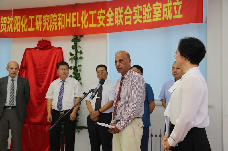 化工事業(yè)部副總裁、沈陽院院長胥維昌教授,英國HEL公司總經(jīng)理Jasbir Singh 博士,為聯(lián)合實驗室揭牌并分別致辭。沈陽院副院長蔡磊明博士,ARKS和CISP公司研發(fā)總監(jiān)Arcady博士,英國HEL公司高級設(shè)計和技術(shù)專家Derick博士,英國HEL公司北京代表處首席代表楊海鵬先生等參加揭牌儀式。儀式由沈陽院化工安全技術(shù)與工程中心總監(jiān)程春生博士主持。