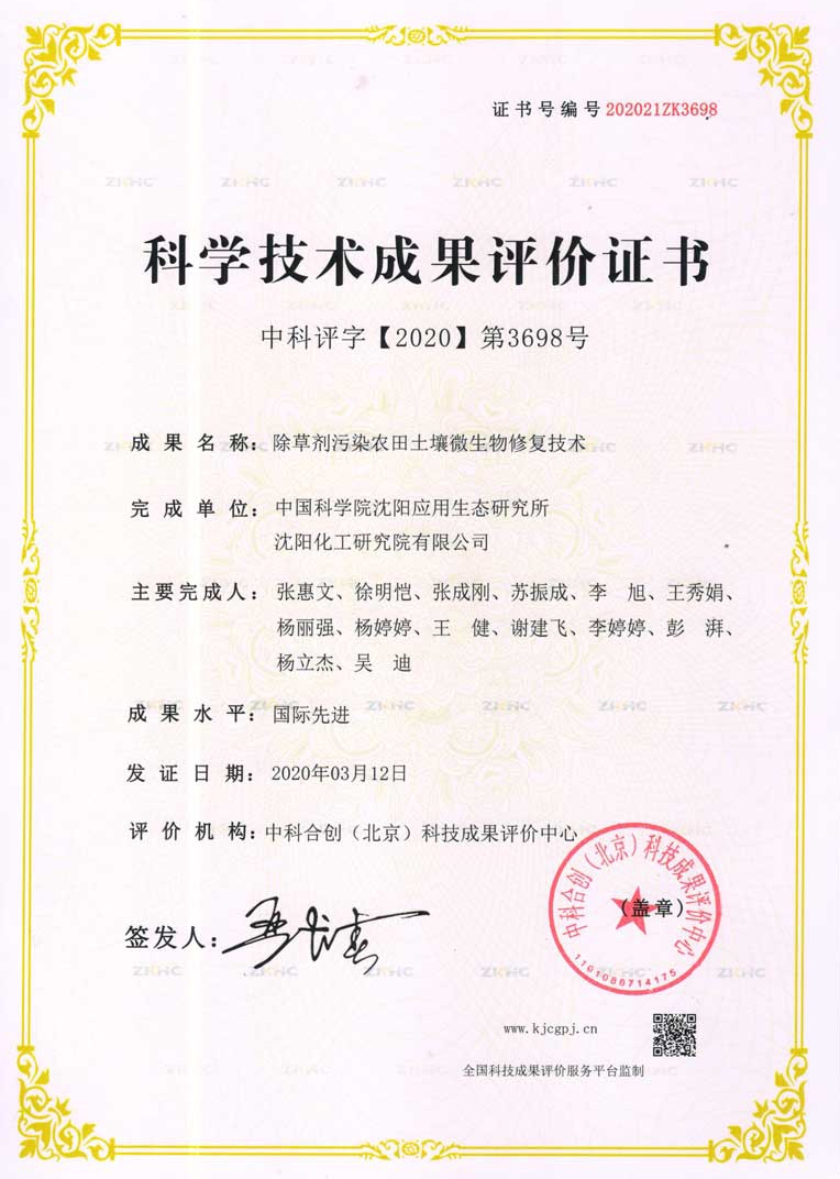 近日,經(jīng)第三方專業(yè)科技成果評價機(jī)構(gòu)——中科合創(chuàng)(北京)科技成果評價中心科技成果評價,由沈陽院土壤修復(fù)團(tuán)隊和中科院沈陽應(yīng)用生態(tài)所共同完成的“除草劑污染農(nóng)田土壤微生物修復(fù)技術(shù)”項目,填補(bǔ)國內(nèi)外空白,總體達(dá)到國際先進(jìn)水平。
