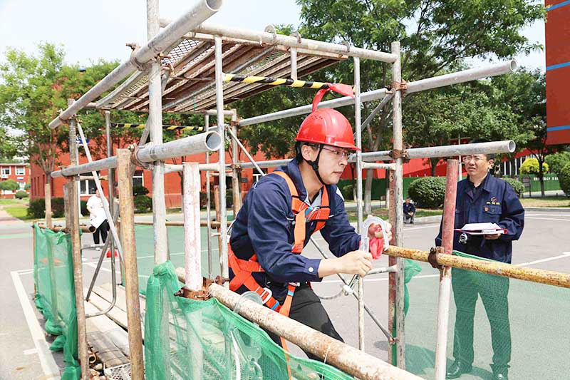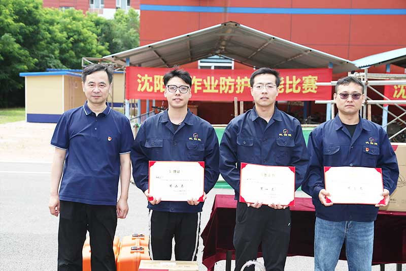 在裁判組介紹規(guī)則后, 比賽正式拉開帷幕。各參賽選手從裝備檢查到現(xiàn)場(chǎng)作業(yè),都小心操作,一絲不茍。各裁判員手拿計(jì)分卡和計(jì)時(shí)器,全程嚴(yán)格打分,認(rèn)真點(diǎn)評(píng)。兩個(gè)項(xiàng)目都從操作和速度兩個(gè)維度進(jìn)行評(píng)判,最終角逐出一等獎(jiǎng) 、二等獎(jiǎng)、三等獎(jiǎng)各1名。沈陽院副院長(zhǎng)龔黨生為獲獎(jiǎng)選手頒獎(jiǎng),并鼓勵(lì)大家今后更多參與安全提升活動(dòng)。