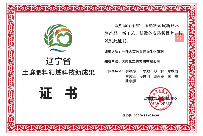 日前,沈陽院生物所土壤修復(fù)團(tuán)隊(duì)自主研發(fā)的大豆抗重茬微生物菌劑,獲得了遼寧省土壤肥料領(lǐng)域科技新成果證書。該產(chǎn)品可有效改良重茬土壤,增加重茬作物產(chǎn)量。該成果不但解決了目前大豆根際土壤質(zhì)量變差的問題,還顯著延長了微生物菌劑的保質(zhì)期。生物所土壤修復(fù)團(tuán)隊(duì)依托微生物產(chǎn)品研發(fā)平臺(tái),以土壤障礙因素診斷技術(shù)為根本,以綠色微生物肥料開發(fā)為方向,現(xiàn)已開發(fā)出4個(gè)系列綠色微生物菌劑產(chǎn)品,并系統(tǒng)解決了菌劑產(chǎn)品效果不穩(wěn)定、貨架期短等問題。