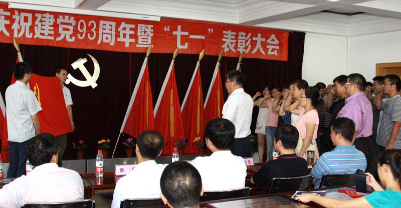 在組織黨員過政治生日的環(huán)節(jié)中,常務(wù)副院長(zhǎng)胥維昌帶領(lǐng)全院過政治生日的63名黨員,在鮮紅的黨旗下重溫了入黨誓詞,再一次莊嚴(yán)承諾。黨委副書記夏志學(xué)在致辭中指出:組織黨員過“政治生日”是我院加強(qiáng)黨的建設(shè)、強(qiáng)化黨員意識(shí)、增強(qiáng)黨性修養(yǎng)的一個(gè)重要舉措,既是我們黨員的政治待遇,也是人生中最美好的時(shí)刻,因?yàn)樵谶@五年、十年、十五年乃至三十五年的黨齡生活中,我們所走的的每一步都將鐫刻在沈陽院的歷史豐碑上。