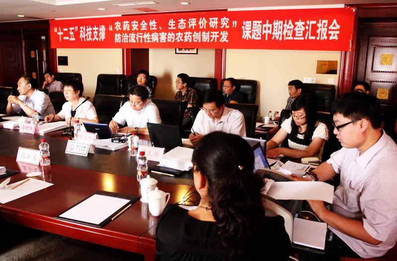 7月3日-6日,國家“十二五”科技支撐計劃兩個課題中期評估會在遼寧沈陽召開,沈陽院和農(nóng)業(yè)部農(nóng)藥檢定所兩個課題負責(zé)單位承辦了此次會議。參加中評估的分別是沈陽院承擔(dān)的“防治流行性病害殺菌劑的創(chuàng)制開發(fā)”和農(nóng)業(yè)部農(nóng)藥檢定所承擔(dān)的“農(nóng)藥安全性、生態(tài)評價研究”課題。
