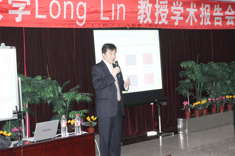 Long Lin教授首先在機關(guān)第三會議室為我院科研人員作了主題為利茲大學(xué)染料前沿研究的學(xué)術(shù)報告,由徐院長主持,染料所全體人員參加了報告會。會上,Long Lin教授重點介紹了利茲大學(xué)染料專業(yè)的研究內(nèi)容、科研成果,分析了染料工業(yè)的現(xiàn)狀,并回答了數(shù)位同志提出的相關(guān)問題。Long Lin教授的報告得到與會同志的高度評價。會后,徐院長,王所長及染料所相關(guān)負(fù)責(zé)人與Long Lin教授在第一會議室進(jìn)行了學(xué)術(shù)研討會,探討了未來沈陽院與利茲大學(xué)在技術(shù)及培訓(xùn)方面的合作。