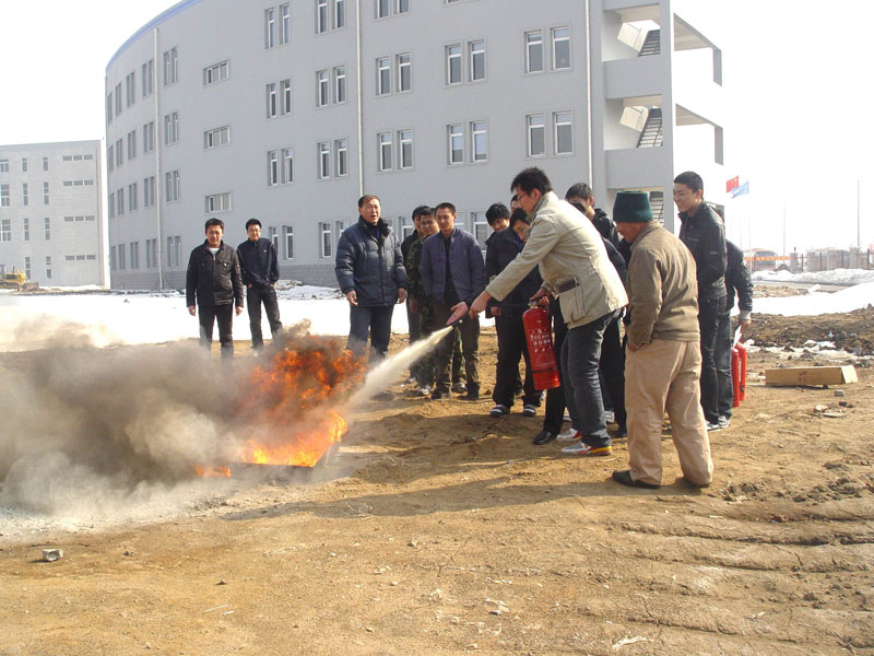 培訓(xùn)結(jié)束,為檢驗(yàn)學(xué)習(xí)效果,做到理論與實(shí)踐相結(jié)合,公司在空曠場(chǎng)地放置一個(gè)方形的鋼槽,倒入一定量的廢溶劑,準(zhǔn)備了干粉滅火器,然后點(diǎn)燃溶劑模擬火災(zāi)現(xiàn)場(chǎng),由院治安保衛(wèi)辦消防干事顏景軍就滅火器的種類及使用方法、突發(fā)火災(zāi)的正確處理方法、如何在突發(fā)火災(zāi)情況下自保、救護(hù)等消防知識(shí)進(jìn)行了現(xiàn)場(chǎng)傳授,并現(xiàn)場(chǎng)演示了干粉滅火器的正確使用,隨即組織員工開展了防火演練,廣大員工特別是新參加工作的員工踴躍參與滅火演練,掌握了基本的防滅火技能。