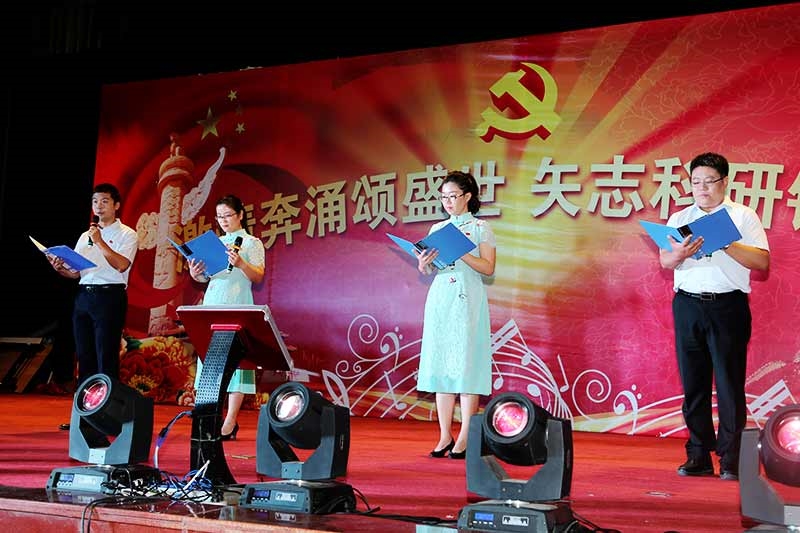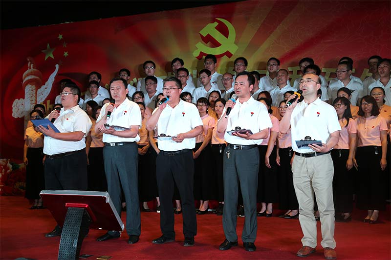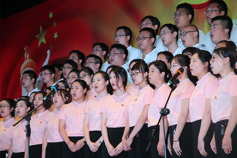 大會期間,與會人員共同欣賞了由各黨支部文藝骨干精心排練的慶“七一”文藝演出。開場歌曲《今天是你的生日》,唱出了科研人員忠貞愛黨、興化報國的心聲;配樂詩朗誦《黨在我心中》,抒發(fā)了永遠聽黨話、一心跟黨走的壯志豪情;女聲二重唱《相逢是首歌》,展現(xiàn)了新時期科研人員的風(fēng)采;化工事業(yè)部青年風(fēng)采大賽獲獎作品、情景劇《GLP,永遠在路上》,彰顯著沈陽院雄厚的科研實力和頑強的拼搏精神;配樂詩朗誦《七月暢想》,用深情的筆墨、凝練的辭藻,書寫著我們黨九十六年的輝煌歷程;男聲獨唱《紅旗飄飄》,讓五星紅旗庇蔭下的我們,更加群情激越、團結(jié)奮進;合唱《保衛(wèi)黃河》,在重溫那段崢嶸歲月中,用激情與熱血照亮著生命的航程;由院領(lǐng)導(dǎo)班子成員獻上的合唱《沒有共產(chǎn)黨就沒有新中國》,唱出了更是把演出活動推向了高潮,贏得了現(xiàn)場觀眾熱烈的掌聲。