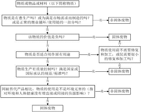 導則第三部分列出了“固體廢物與非固體廢物判別流程圖”(見圖1),該“流程圖”有5層判斷項,其中有4個判斷項可以得出“非固體廢物”的屬性。其中在第2項判斷為“有價值”的基礎上的后續(xù)3個判斷,可以看做對于廣義價值的選擇和控制。即“基本保留原有用途的價值+符合相關產(chǎn)品標準+可直接用作替代產(chǎn)品,且使用過程環(huán)境無害”。