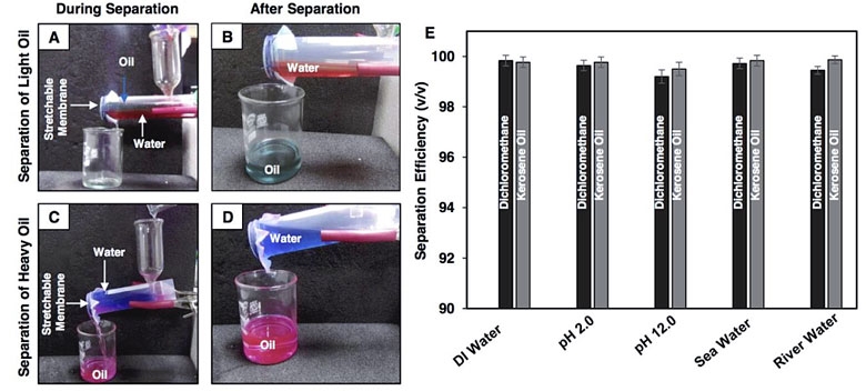 PU基超疏水材料可用于高效油水分離。圖片來源:J. Mater. Chem. A